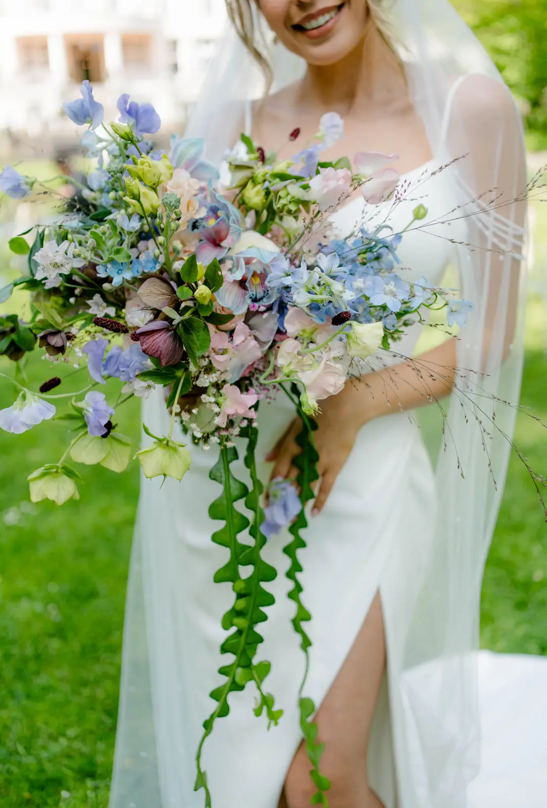 Die Farbwelt – helles Blau, zartes Rosé, Apricot und frisches Grün – spiegelte die Liebe der beiden zu Kunst und Architektur wider. Florale Elemente fanden ihren Platz, aber stets mit Zurückhaltung und Eleganz.